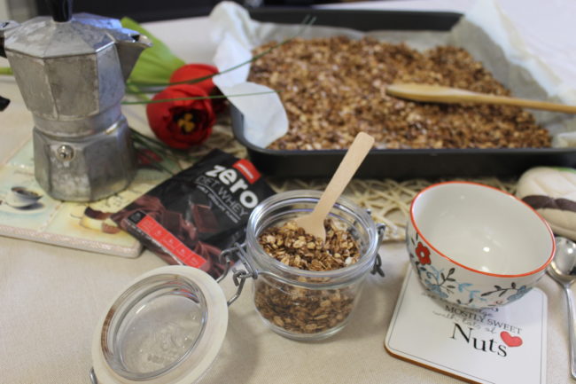 Muesli proteico, senza olio e zucchero Croccante ma leggero: solo 4 ingredienti Sfido chinque di voi, che abbia cliccato su questa ricetta, ad essere un amante del muesli…ma come sappiamo,ahimè, tutti quelli che troviamo sugli scaffali di un supermercato sono spesso ricchi di zucchero, grassi (spesso vegetali-Idrogenati, quelli che ci fanno male)…