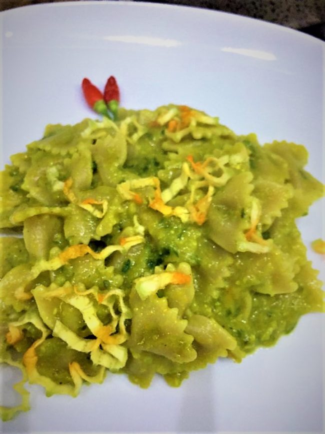 Ingredienti: pasta integrale zucchine fiori di zucca cipolla spezie (pepe nero, curcuma) basilico olio evo 10 gr parmigiano (ad personam) Procedimento: Lessa le zucchine a vapore con cipolla, pepe nero e curcuma; negli ultimi 5/10 min di cottura giungi i fiori di zucca. Ultimata la cottura si procede a frullare il tutto con del basilico…