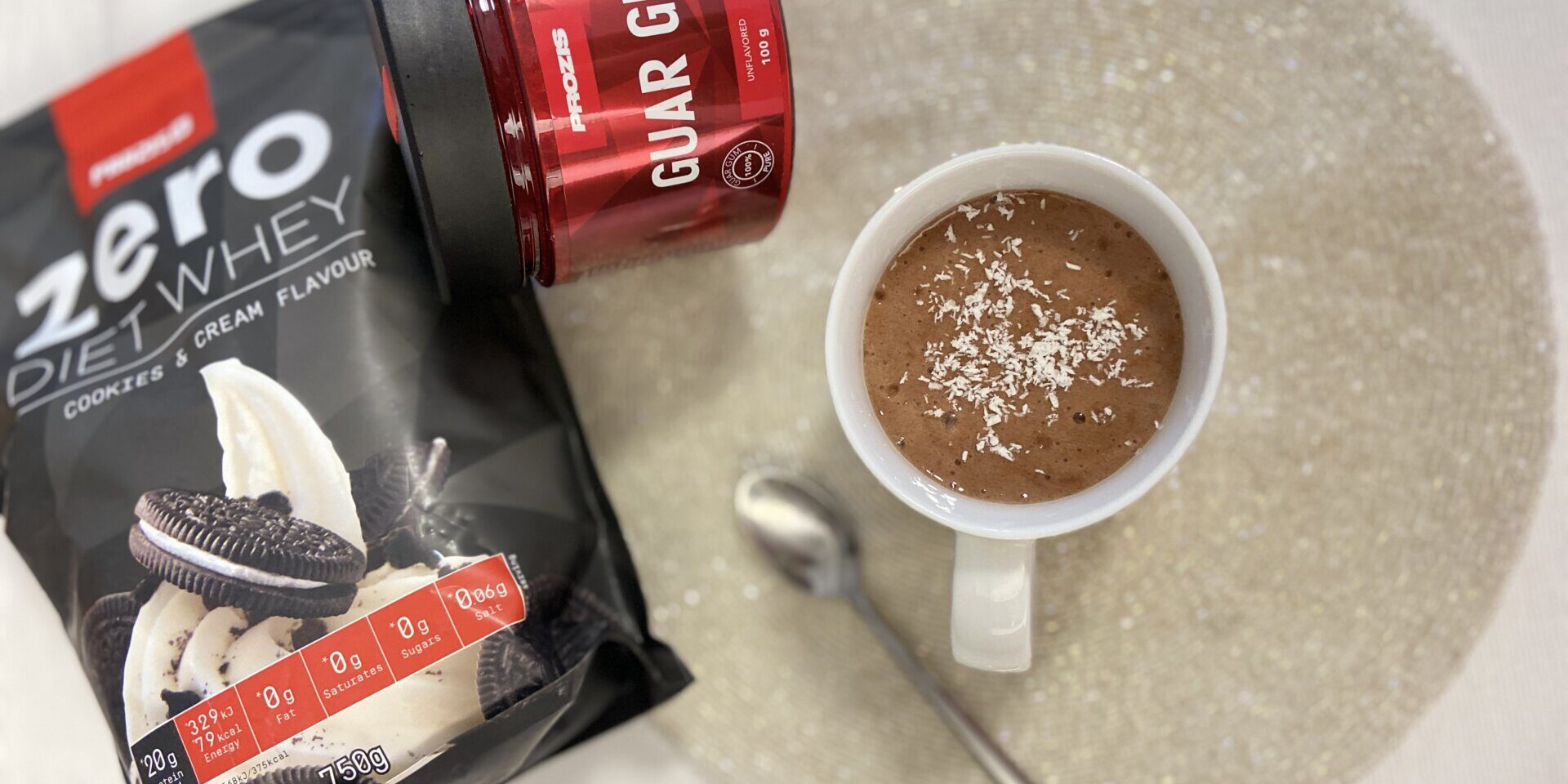 versare in un mixer le proteine, la gomma di guar come addensante ed i liquidi che hai scelto di utilizzare. Frulla e versa nella tua tazza, guarnisci con frutta o spolverata di frutta secca per un mix perfetto e goloso!