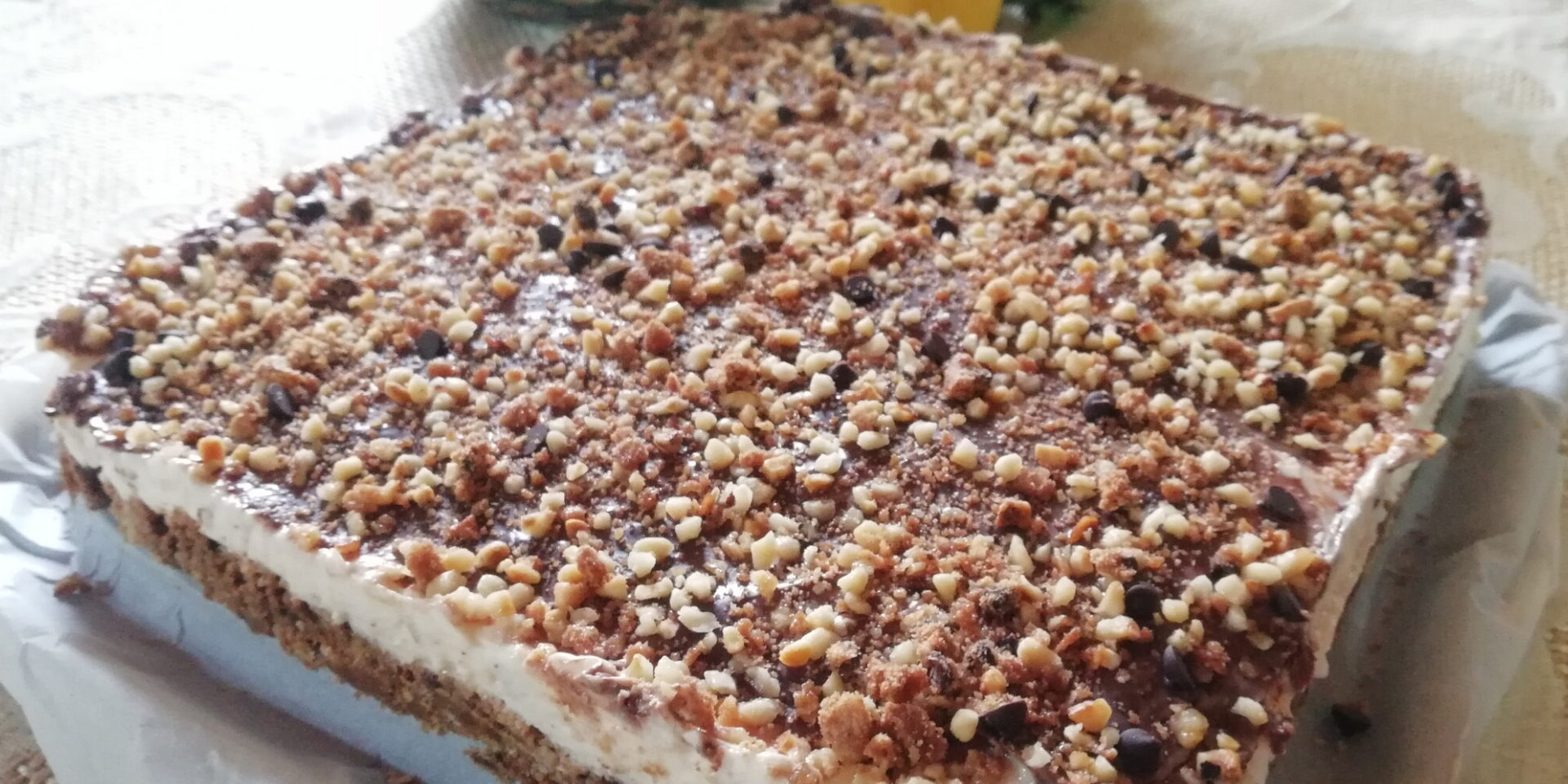 Infine sciogliere a bagnomaria il cioccolato fondente con un 2/3 cucchiai di acqua .. Versalo sulla Cheesecake e con un cucchiaio distribuiscilo sulla superficie in modo omogeneo. Versa una manciata di nocciole per finire?