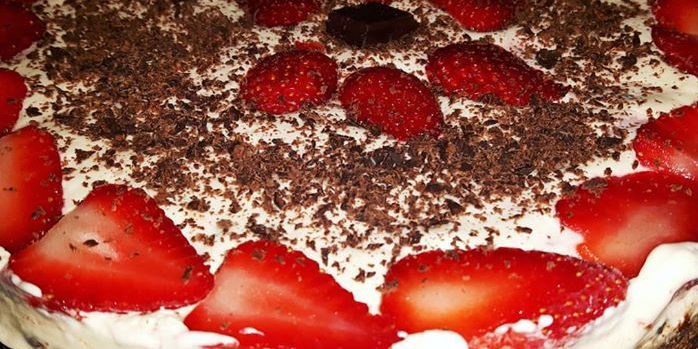- Versare il commposto sulla base di biscotto, guarnire con fragole e scaglie di cioccolato fondente. Mettete la cheesecake coperta da pellicola alimentare nel freezer per 2 ore circa oppure in frigo per circa 4 ore, fino a quando non si solidifica.