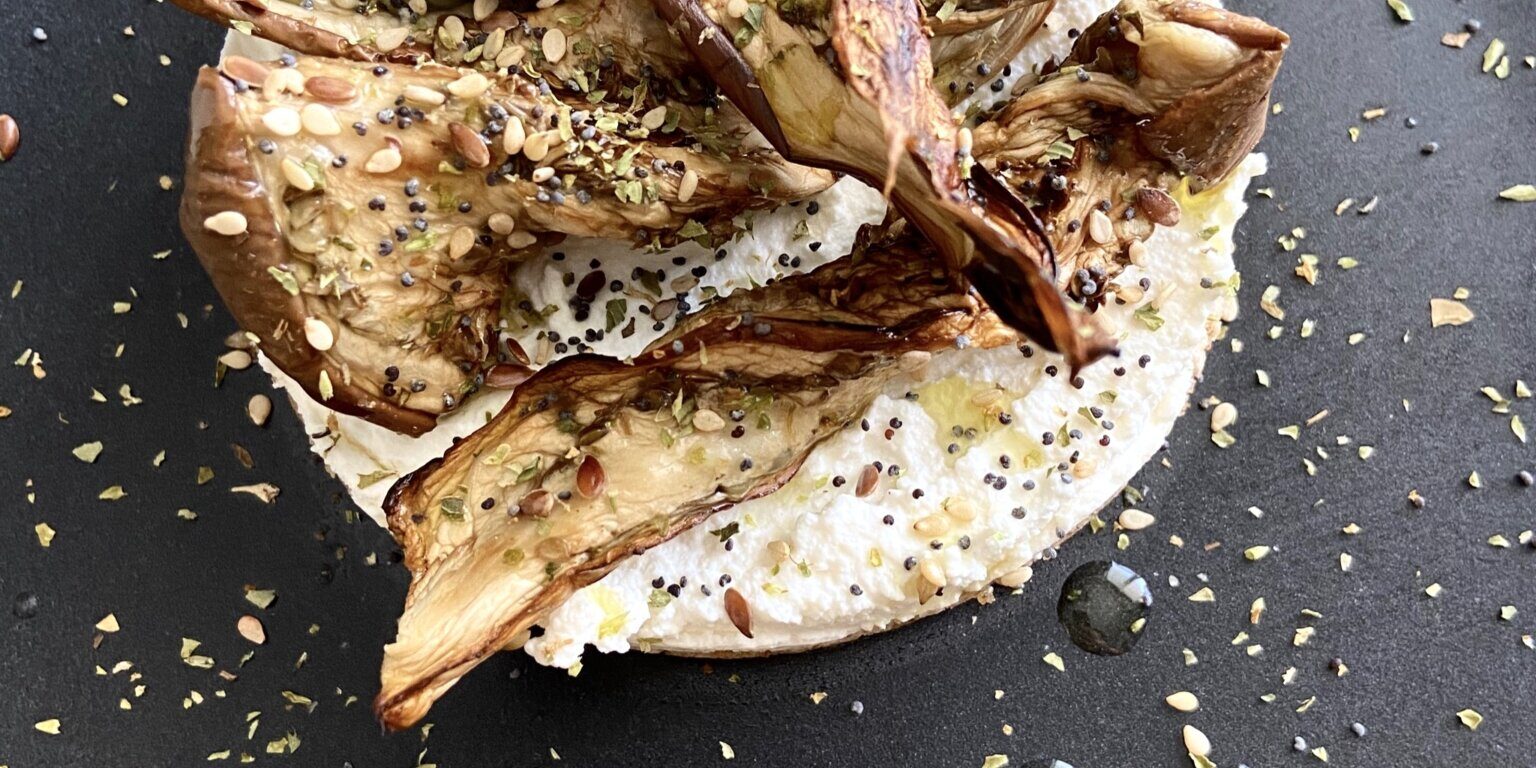 - lavorare la ricotta e porre sulla base. Adagiare le melanzane (o altre verdure), precedentemente cotte al forno e condite con olio aromatizzato con menta fresca.