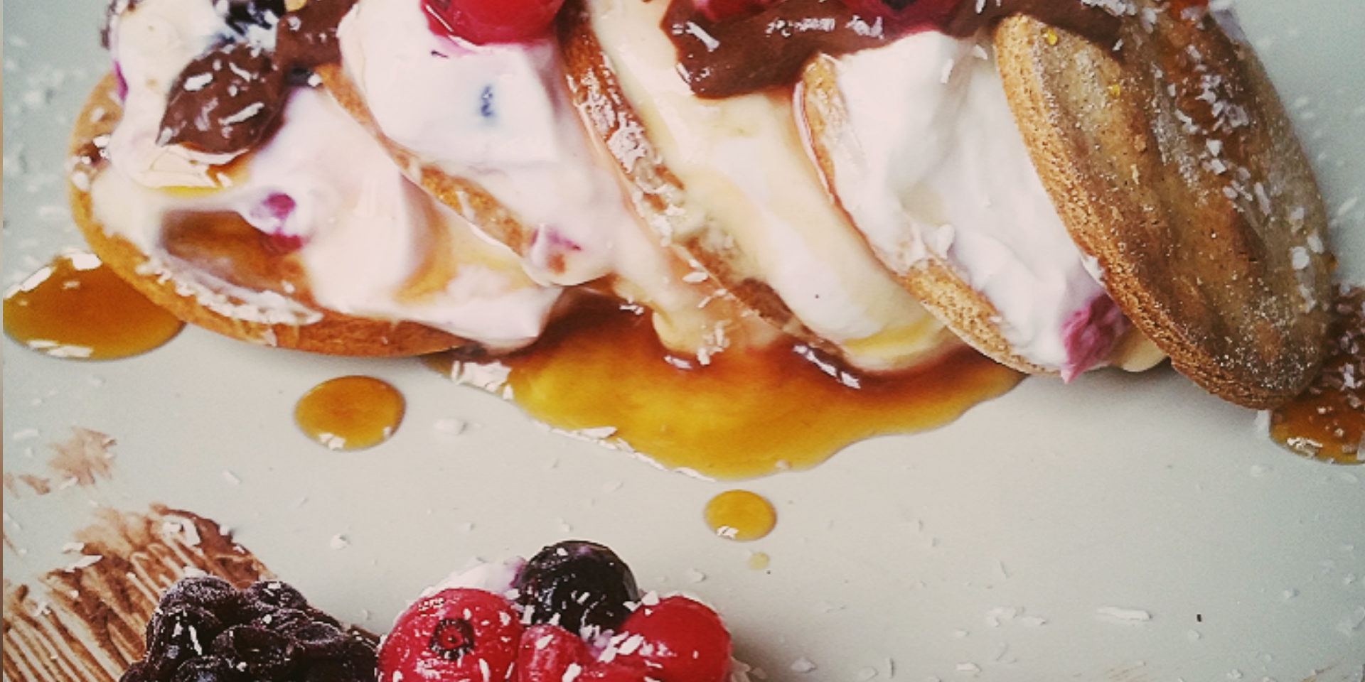 Ho messo la crema tra una cialda e l’altra ,ho aggiunto i frutti di bosco adagiandoli sopra le cialdine ,con un cucchiaino ho messo la cremina al cioccolato e lo sciroppo d’acero ed infine ho dato una spolverata col cocco rapè.