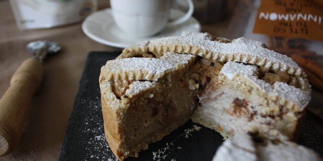 Iniziare preparando la frolla. Unire le farine, il lievito, il miele, lo yogurt, l’olio di cocco, l’albume e l’acqua fredda. Lavorare velocemente l’impasto e formare una palla. Ricoprire con della pellicola e lasciare riposare in frigorifero per 30 min.