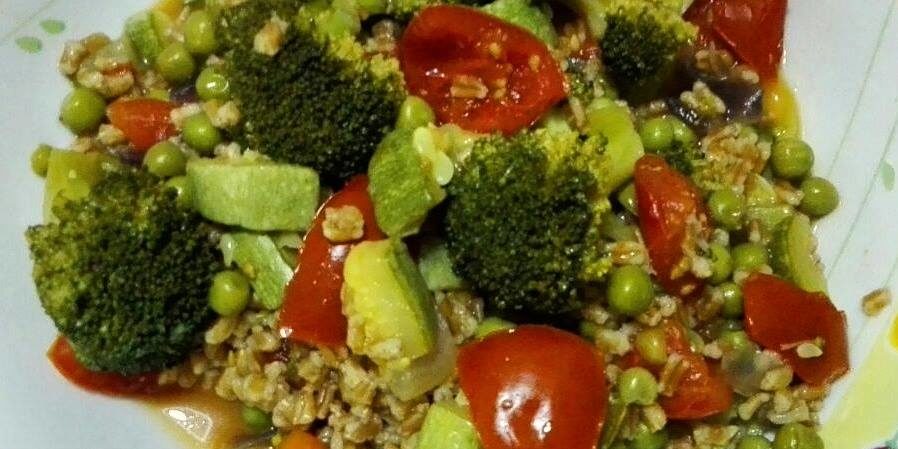 Cuocere l’orzo in acqua bollente, in una pentola a parte cuocere la cipolla e sedano con un filo d’acqua, una volta cotti, sbollentare lievemente il mix di verdure ed i piselli. Ultimata la cottura dell’orzo, saltare in padella con il mix di verdure e piselli; impiattare e… Buona salute a tutti