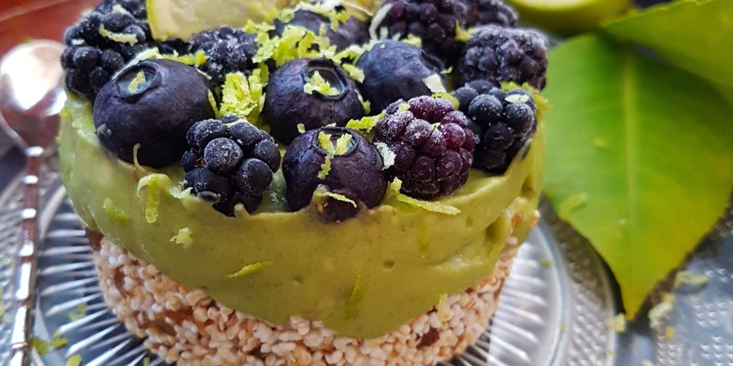 Aggiungi il succo di lime e la scorza grattugiata, la vaniglia, lo xanthan e il miele.  Amalgama bene. Riprendi la base rassodata in frigo e metti anche la crema. Lascia riposare per almeno 1 ora. Meglio se tutta la notte.