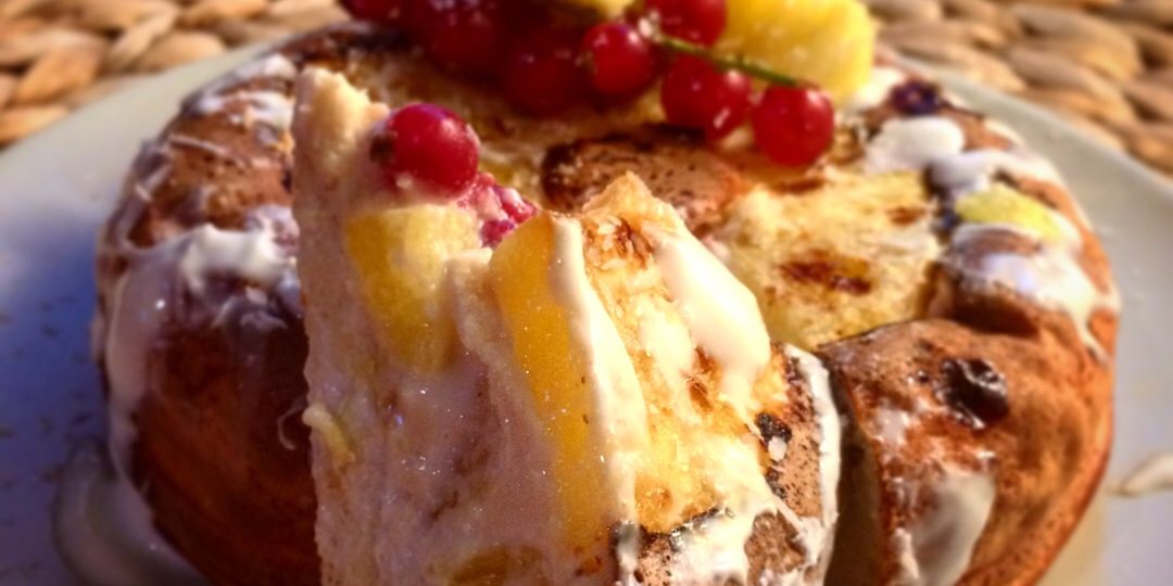 ▪amalgamare le farine con gli albumi e il latte . Aggiungere successivamente la frutta e mescolare nuovamente. In fine mettere bicarbonato e limone ,lasciare agire 20 secondi e mescolare tutto. Tagliare una fetta dina ananas circolare e porre sul fondo del nostro pentolino con un po’ di olio di cocco e poi mettere l’impasto. Coprire con coperchio e lasciar cuocere 10 minuti . Lasciar raffreddare un po’ e Servire con dello yogurt e un po’ di frutta fresca ?