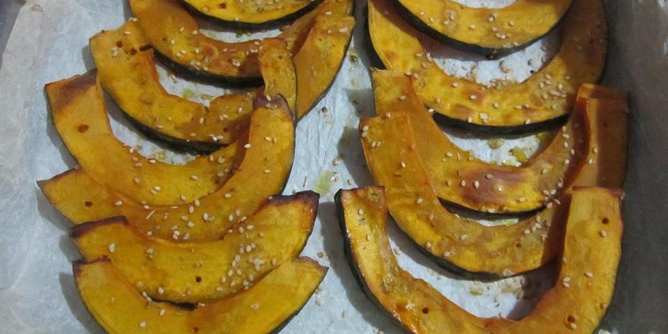 Tagliare a fette la zucca a media grandezza, ma non spesse; disporla su una teglia da forno previamente rivestita da carta forno, condire la zucca con semi di zucca, pepe nero, rosmarino ed un mix di acqua con ½ cucchiaini di olio evo. Unire a piacimento altre spezie e poi infornare a 180° per 15/10 minuti o comunque fino a quando la superficie non risulta dorata ma non bruciata.